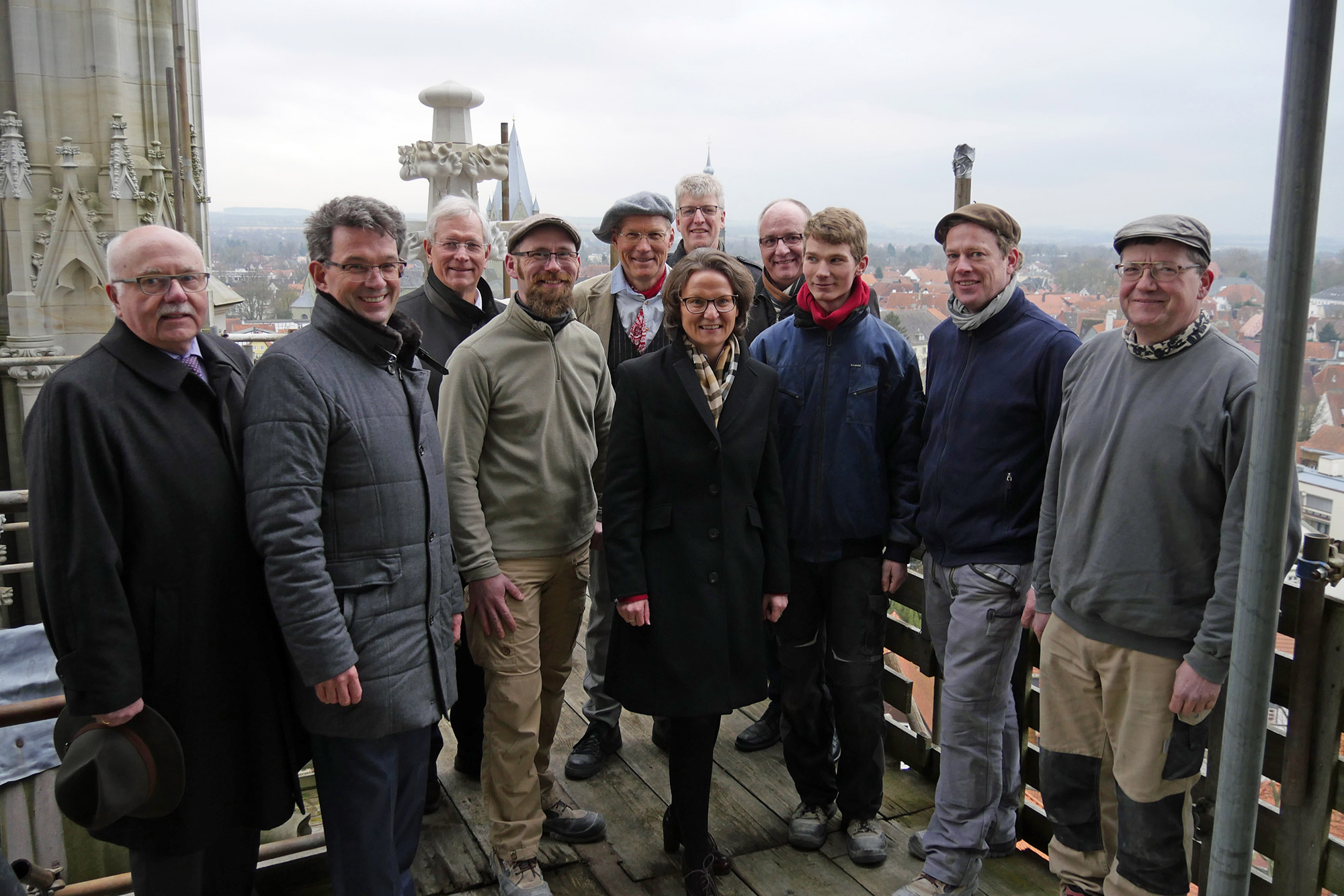 Am Freitag, den 23. März 2018 durften wir unserer Ministerin die Maßnahme an der Wiesenkirche und in allen Aspekten die Arbeit der Dombauhütte vorstellen und erläutern. Rasch konnte wahrgenommen werden, dass Frau Scharrenbach auch in Details fein informiert war.