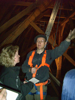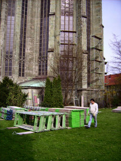 Den größten Bereich in der Restaurierung der Wiesenkirche stellt die Wiederherstellung der Türme dar. Aber stets müssen alle Bereiche des gotischen Juwels im Blick behalten werden. Schon lange war und ist der schlechte Zustand des Daches bekannt. Nicht nur, dass der Schiefer an vielen Stellen brüchig ist, vor allem auch der historische Dachstuhl aus dem 14. Jahrhundert hat unter der Witterung und den Folgen des letzten Krieges gelitten.