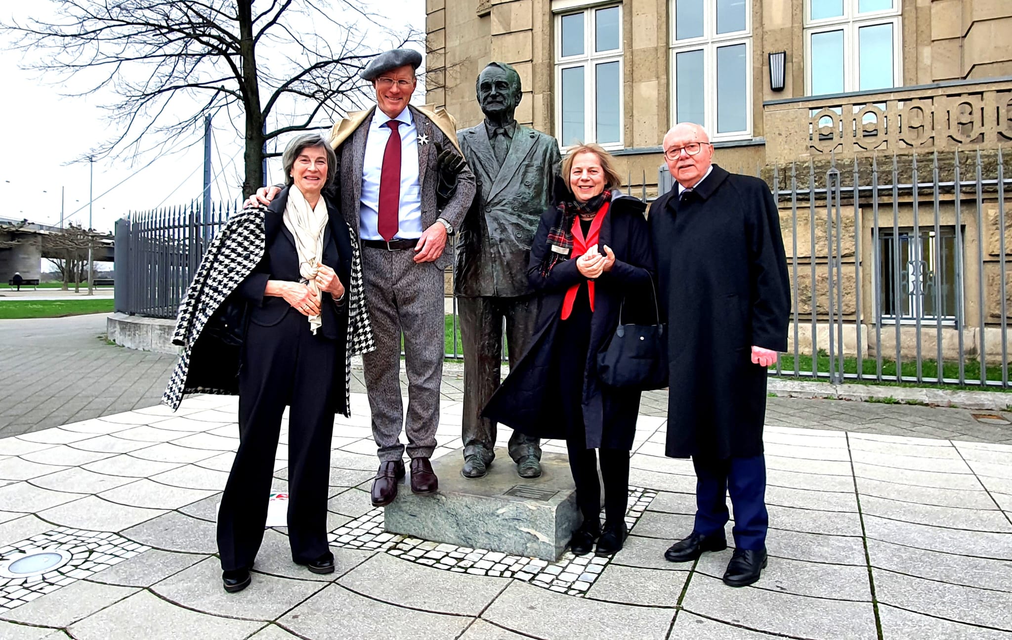 Die Delegation zur Verleihung des Verdienstordens NRW auf dem Johannes-Rau-Platz vor der Staatskanzlei.