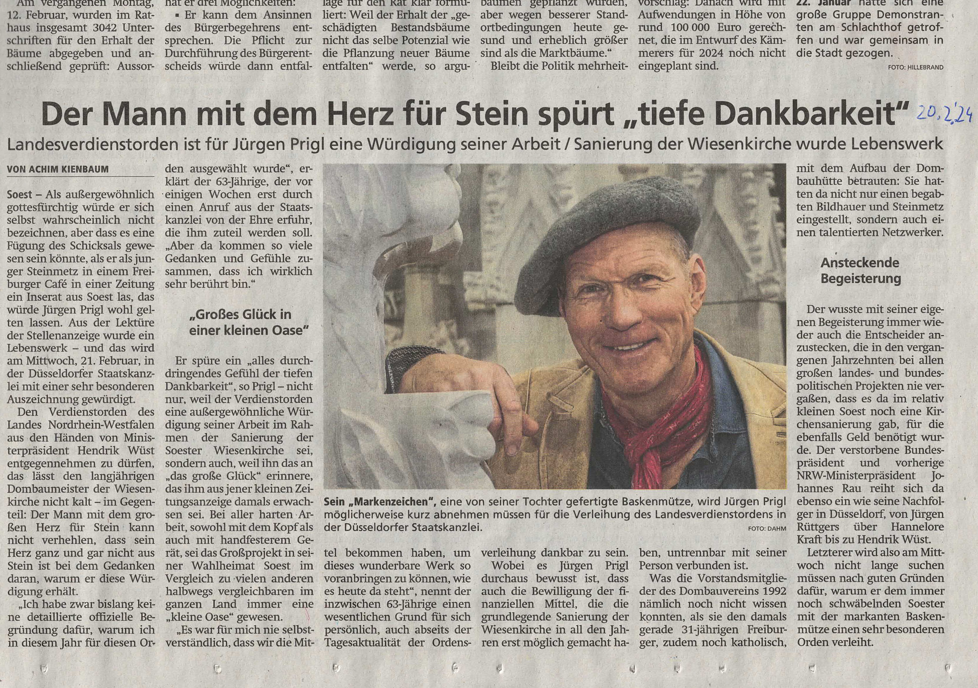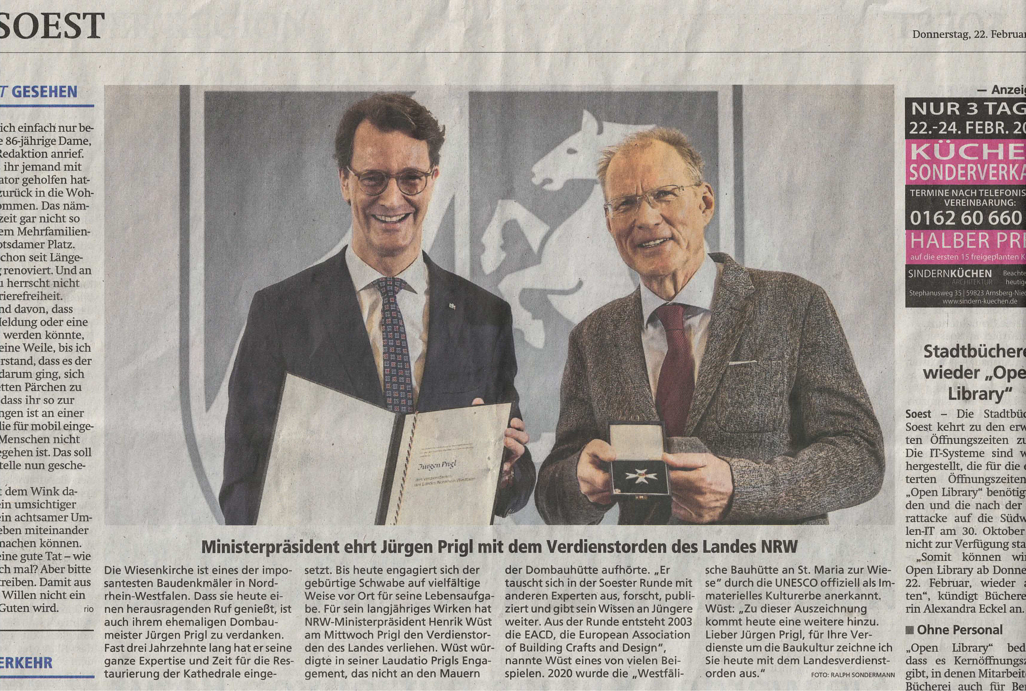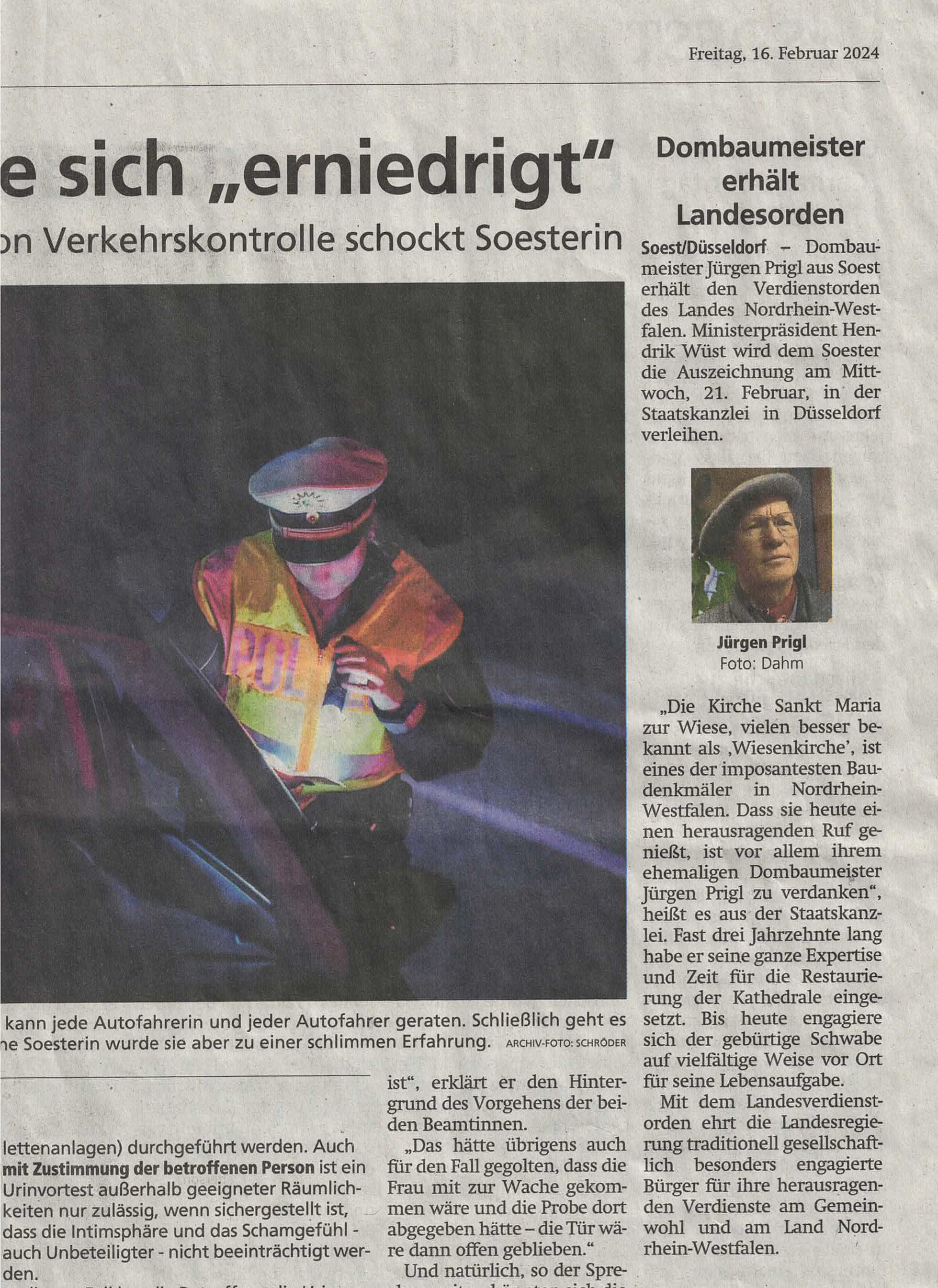 Die Wiesenkirche in Soest ist ein imposantes, über 700 Jahre altes Denkmal der Gotik in unserem Land. Heimat einer starken evangelischen Gemeinde. Und stolzes Symbol für alle, die in der Hansestadt Soest leben. Dass die Wiesenkirche heute in neuem Glanz erstrahlt, ist vor allem Jürgen Prigl zu verdanken. Er hat dort rund drei Jahrzehnte als Dombaumeister gewirkt. Und das mit großem Erfolg und sichtbaren Ergebnissen.