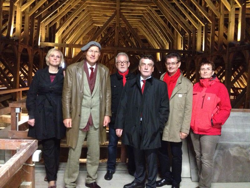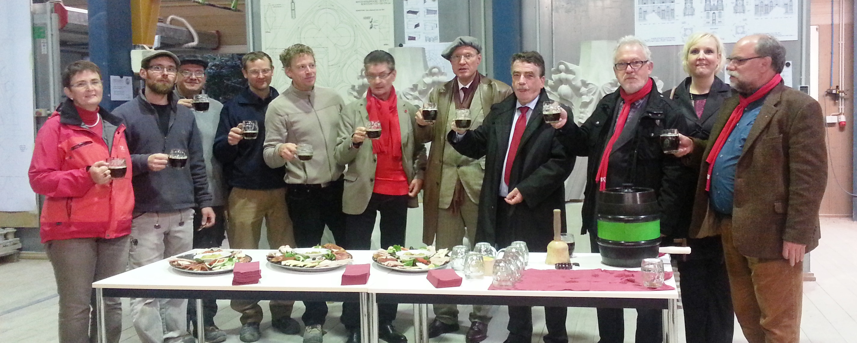 Am 14. September 2013 besuchte Michael Groschek, Minister für Bauen, Wohnen, Städtebau und Verkehr des Landes Nordrhein-Westfalen, die Dombauhütte. Nach einem Gang über die Gerüstbaustelle des Südturmes, auf der gerade kleine Kreuzblumen versetzt wurden, fand der Besuch in der Werkstatt der Dombauhütte seinen Abschluss mit einem zünftigen Vesper, zu welchem der Minister einlud.