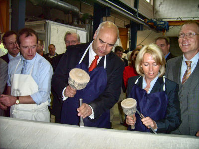 Als Ehrung der politischen Prominenz war ein schon zur Tradition gewordener Ritus gedacht: das Schlagen der Namenszeichen in einen Stein, analog dem Eingravieren historischer Steinmetzzeichen.