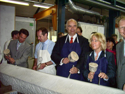 Die Feierstunde zur Würdigung des 10-jährigen Jubiläums der Meisterschule fand im Werkraum der Dombauhütte statt. Zahlreiche Steinmetze und Steinbildhauer haben hier ihre Qualifikation erworben und in der Meisterprüfung ihr Können unter Beweis gestellt. Mit dem ersten Meisterkurs hatte 1997 für eine Einrichtung des Handwerks in NRW eine richtungweisende Maßnahme begonnen. Gründungsväter waren u.a. der damalige NRW-Minister Franz-Josef Kniola und der Präsident der HWK-Dortmund, Otto Kentzler. In einem Grußwort würdigte der Minister für Bauen und Verkehr NRW nun nach 10 Jahren die Verdienste der Meisterschule für die Stadt Soest und das Land NRW. Er sagte Unterstützung und Förderung der Landesregierung zu. Auch der Präsident des Zentralverbandes des Deutschen Handwerks fand persönliche und anerkennende Worte für die nationalen und internationalen Verdienste dieser Einrichtung an der Dombauhütte zu Soest. Er erwähnte die "Charta von Soest" als Gründungsinitiative zur EACD und diese als eine völkerverbindende Institution des Handwerks. Ein Rundgang durch die angeschlossene Präsentation einiger kulturschaffenden Handwerke ließ den Besucher staunen. An Demo-Ständen präsentierten sich: Steinmetze und Steinbildhauer Maßschneider Maler Dachdecker Zimmerer Schmiede Glasmaler