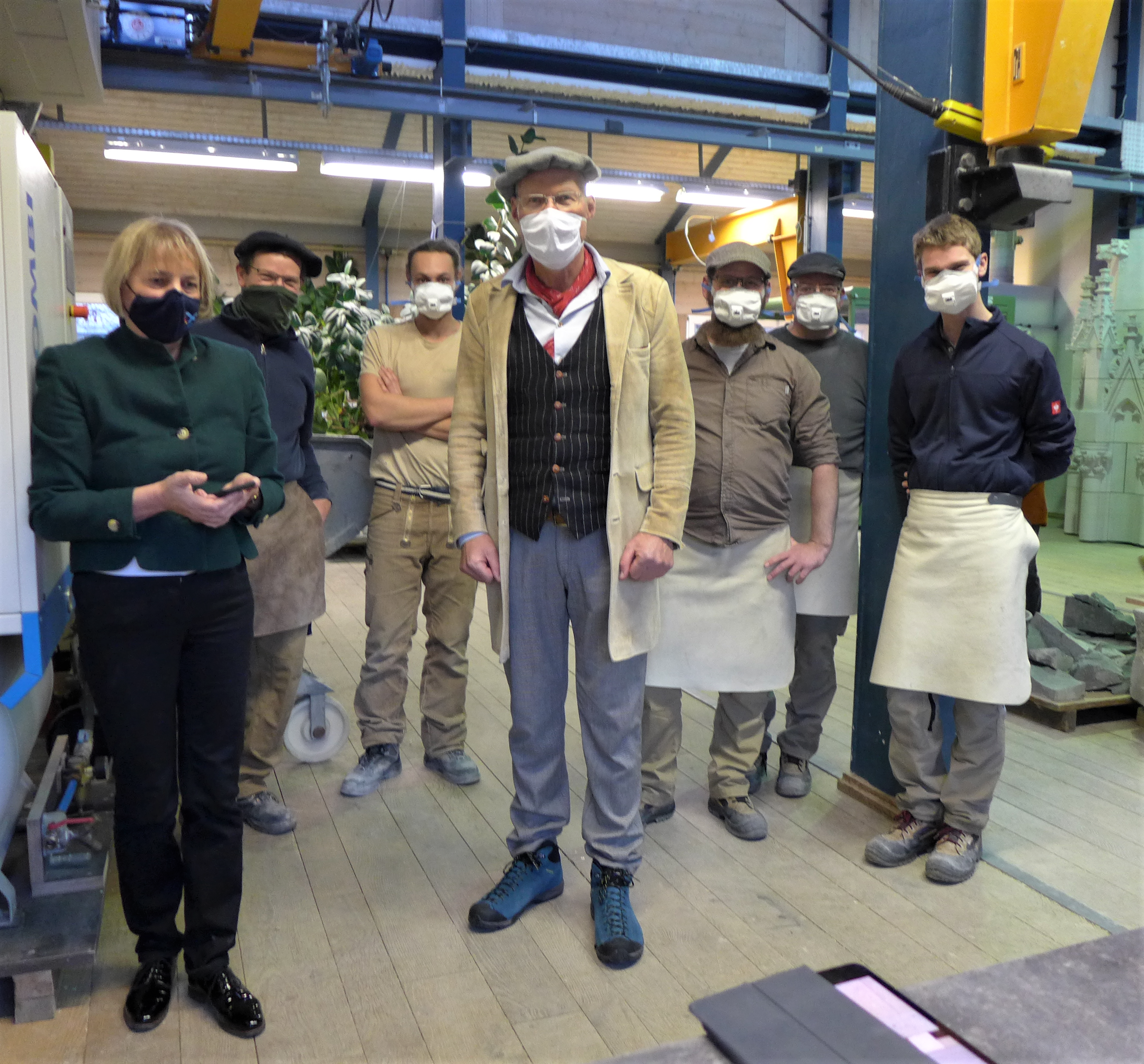 Alt-Dombaumeister Jürgen Prigl und die Belegschaft der Bauhütte an St. Maria zur Wiese verfolgten die Beschlussfassung in Paris per Livestream in der Werkstatt. Birgitta Ringbeck als Ministerialrätin beim Auswärtigen Amt für die Koordinierungsstelle Welterbe zuständig, ließ es sich nicht nehmen, vor Ort die Entscheidung mitzuerleben. Professor Eva-Maria Seng besuchte uns schon am Morgen und war dann die erste telefonische Gratulantin. Birgitta Ringbeck und Professor Seng haben wichtigen Anteil an der Entscheidung der UNESCO. Von Beginn an unterstützten und förderten sie die zur Nominierung und schließlich zur Auszeichnung führenden Initiativen der Dombauhütte an St. Maria zur Wiese. Der Eintrag in die UNESCO-Liste der „Best-Practise-Beispiele“ ist für uns – vereint mit den Kollegen der europäischen Bauhütten – eine hohe Auszeichnung, deren herausragende Bedeutung die reiche Berichterstattung in Presse, Funk und Fernsehen dokumentiert.